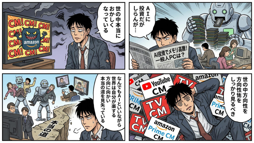 CMまみれの世の中に物申す!AI投資の裏で起きている本当の問題 もう限界だ。CMが酷いしCM内容もヤバい特に「アンロイド」の携帯のVTuberの広告が酷すぎる はっきり言わせてもらう。今の世の中、どこを見てもCMばかりで本当にうんざりしている。 Amazonプラ... -